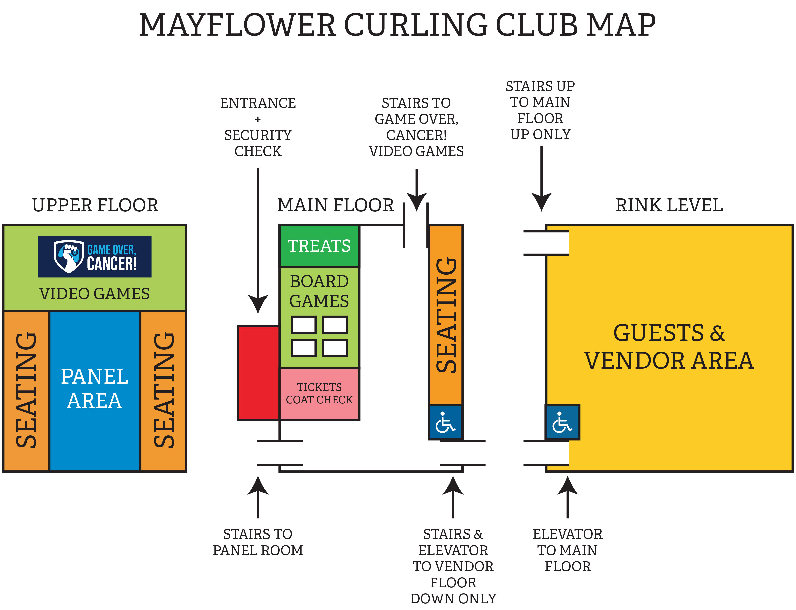 Scroll below to see all the events and goings-on that are happening at this year's Spring Geequinox! Everything is colour-coded to represent the area you can find the event / panel / etc in!